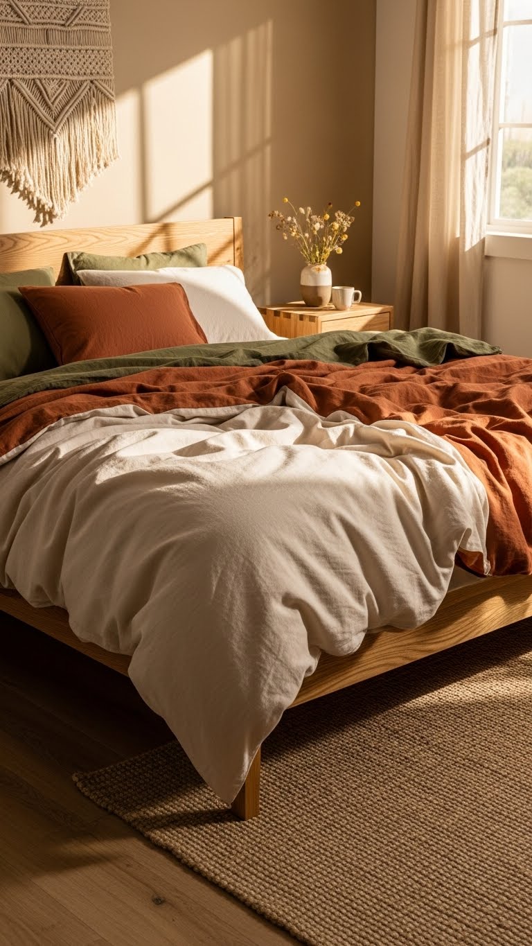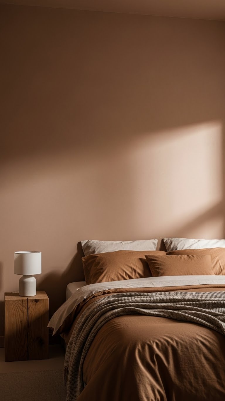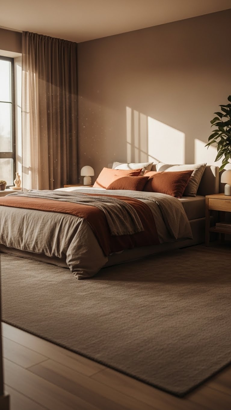Think about swapping icy whites for shades like coffee or clay. These colors make your room feel welcoming right away. Start with a single wall. Pick up a sample paint from a hardware store for under $10. Test it during different times of day. Once you like it, grab a gallon for around $40. Add throw pillows in matching hues from thrift shops. They cost less than $20 each. Mix in a rug with similar tones for extra warmth. This creates a balanced look fast. Break up the space with plants in simple pots. They add life without clutter. Try this DIY: Layer old blankets in warm colors over your bed. It takes minutes and changes the whole vibe. Focus on what works for your daily routine.