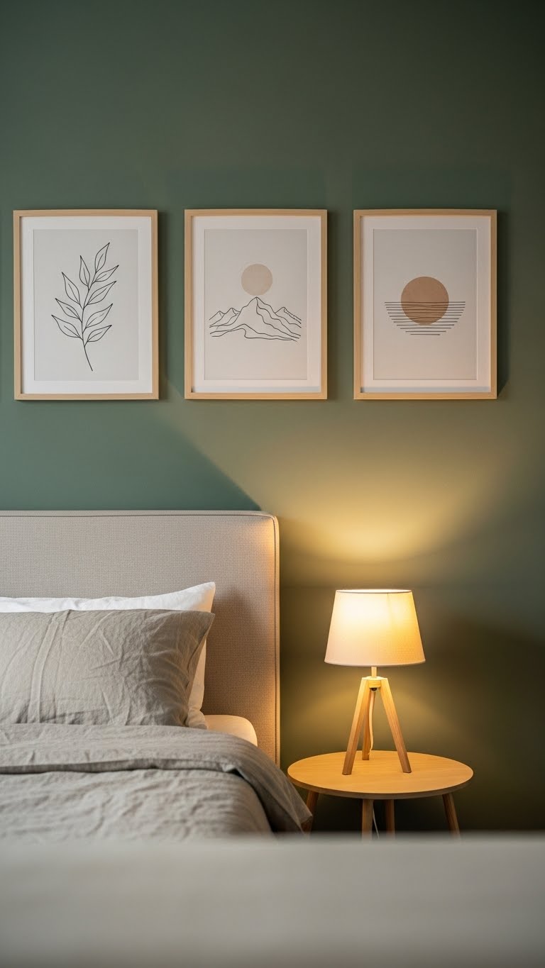 Pick one wall to stand out. Paint it in sage or grey. Use leftover paint if you have it. A small can runs about $20. Hang a single piece of art. Frame a photo from your collection. This adds character fast. Arrange furniture to highlight it. Try a DIY: Create wall art with paper scraps. Glue them into shapes. It personalizes the space easily.