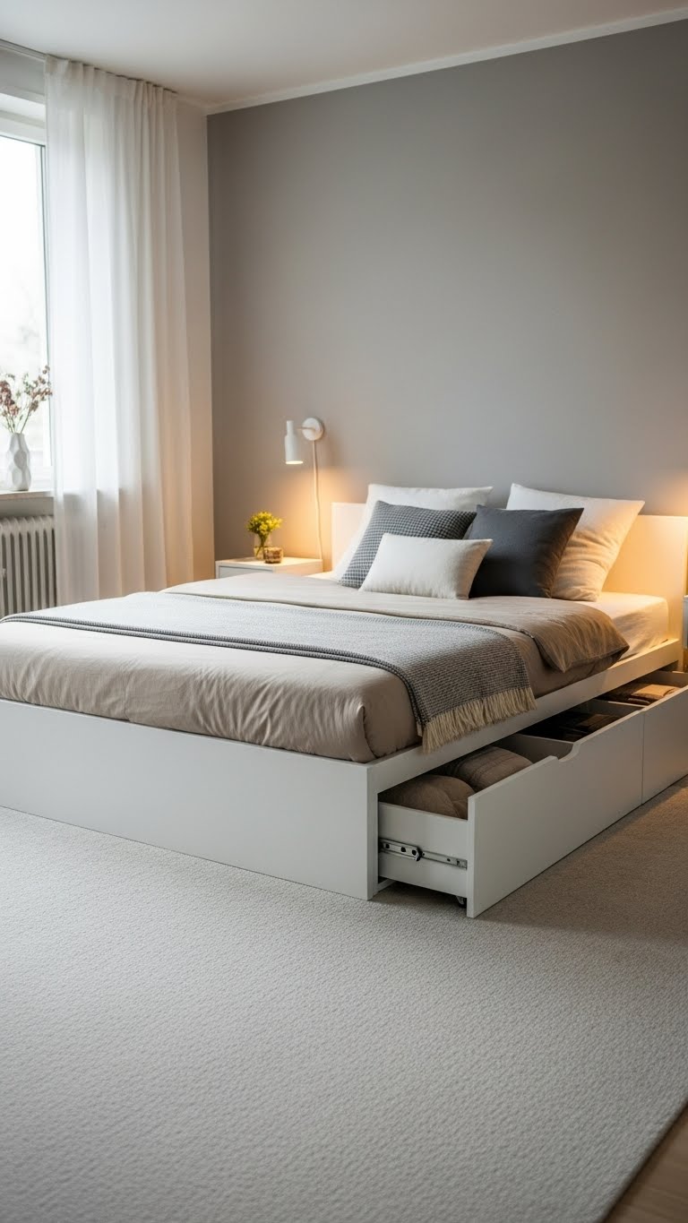 Tuck things away neatly. Install shelves under your bed. Use boxes you already own. Label them for quick access. This keeps surfaces clear. Find storage bins at thrift stores for $5 each. Organize clothes by category. Try a DIY: Build dividers from cardboard. It sorts items without extra cost. These solutions maintain a minimalist feel.