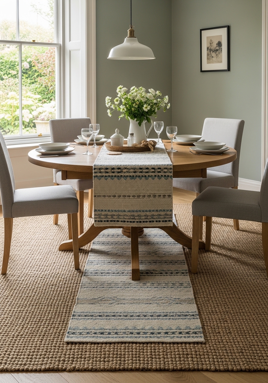 Natural fiber rugs ground a room without stealing attention. I use an 8×10 jute rug with a smaller patterned rug on top. They hide wear and add warmth. Avoid putting them in very damp spots — natural fibers can stain.