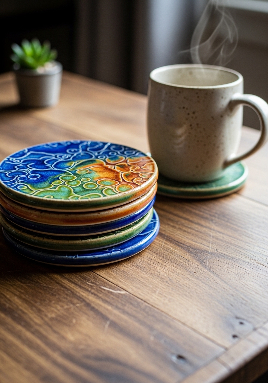 I sanded and sealed leftover ceramic tiles, then hand-painted edges for a custom set. They add color and protect surfaces. I like handmade ceramic coasters as a quick buy. Mistake to avoid: skipping felt pads—your table will thank you.
