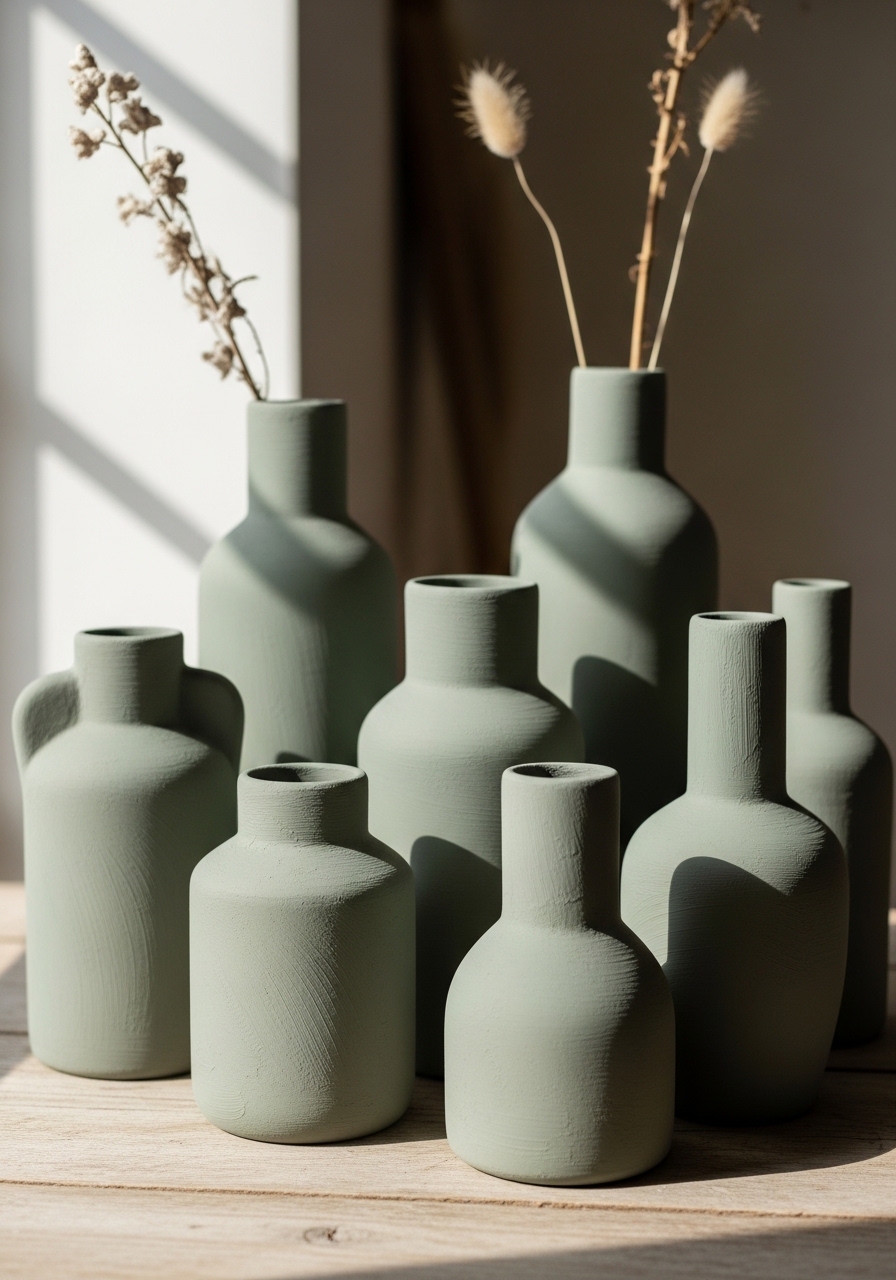 I paint inexpensive terra-cotta pots in muted tones—sage, clay, and oatmeal. Cluster three sizes for a centerpiece. Use a tray to anchor the group. Buy small ceramic vases if you don’t want to DIY. Mistake to avoid: matching all sizes—vary scale for interest.