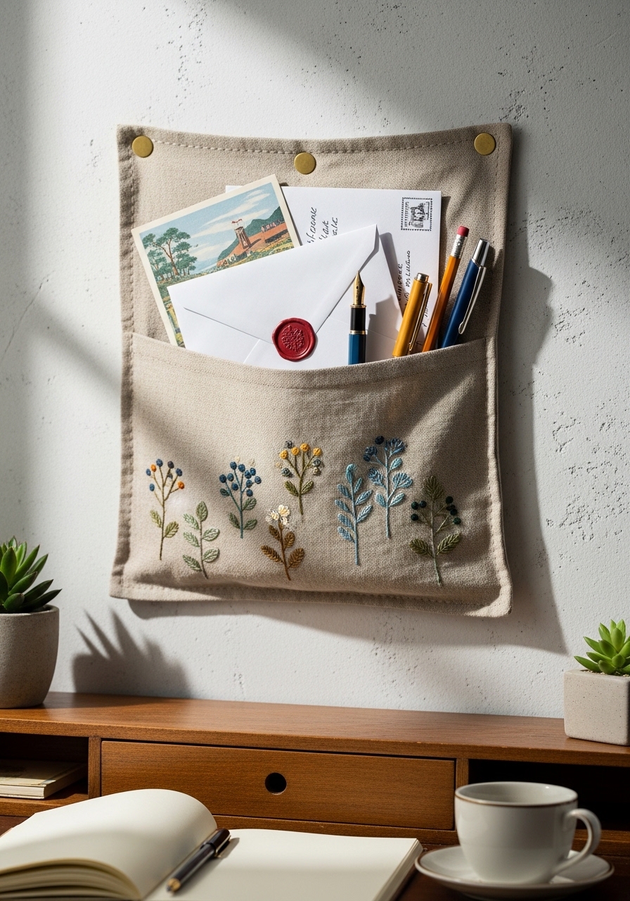 I hung a stitched wall pocket to corral mail and pens. It keeps the desk clear and adds texture. Look for linen wall organizers. Mistake to avoid: filling pockets with too many items—keep it curated.