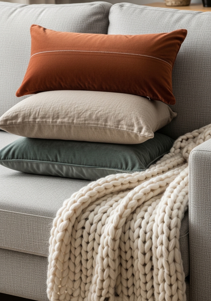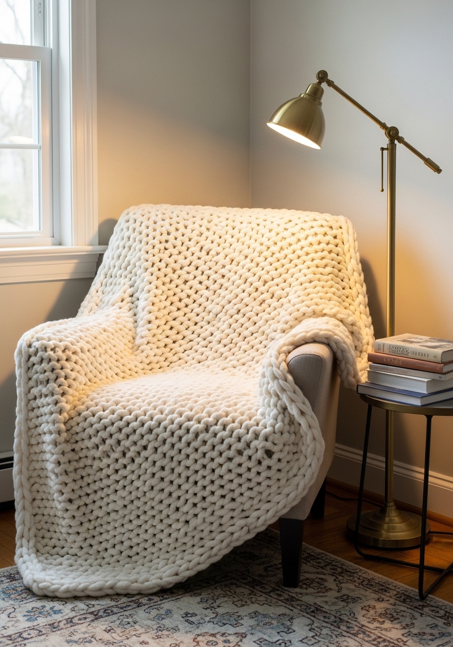 I draped a chunky knit throw over my chair and added a 22-inch euro pillow. The nook invited me to sit. Tip: choose at least 50×60 inches so it looks generous. Too-small throws read cheap.