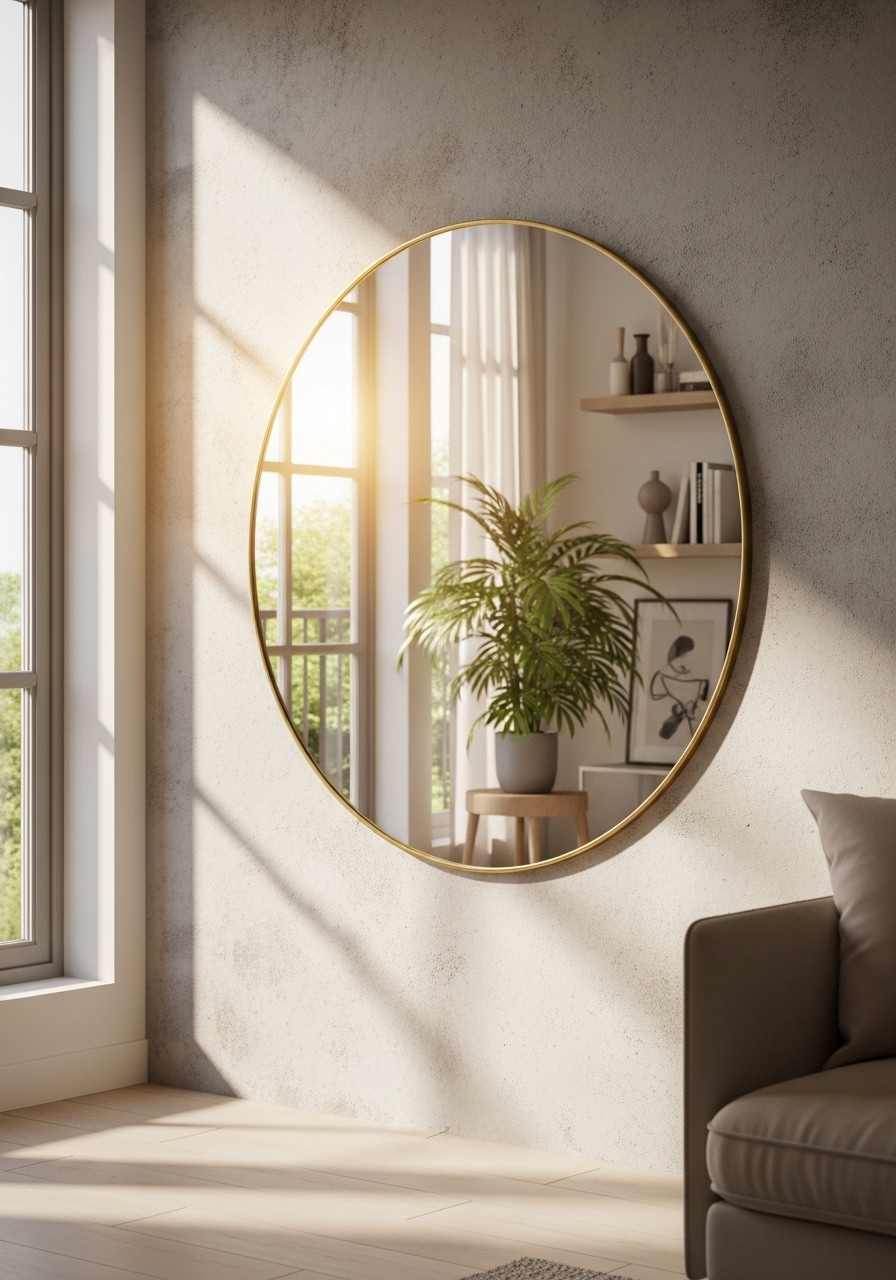 A large mirror around a window changed my dim corner into the brightest spot. I used 36-inch round mirror. Place it opposite a light source and keep frame color consistent with nearby metals. Mistake: too-small mirrors look like afterthoughts.