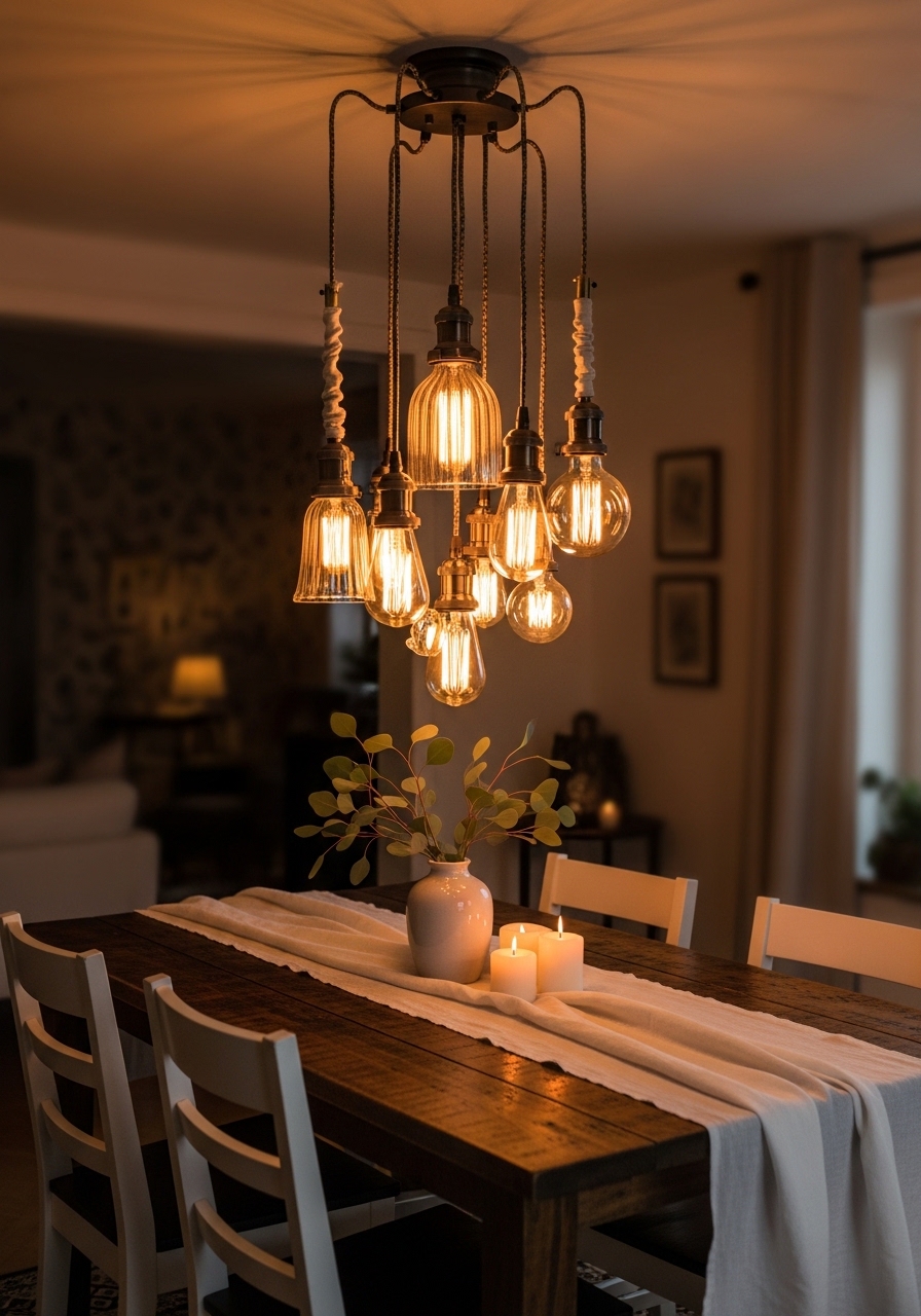 I replaced a dated fixture with a pendant and swapped bulbs to warm Edison LEDs. LED Edison bulbs and a bold pendant change the room’s mood. Don’t forget dimmers for instant evening ambiance.