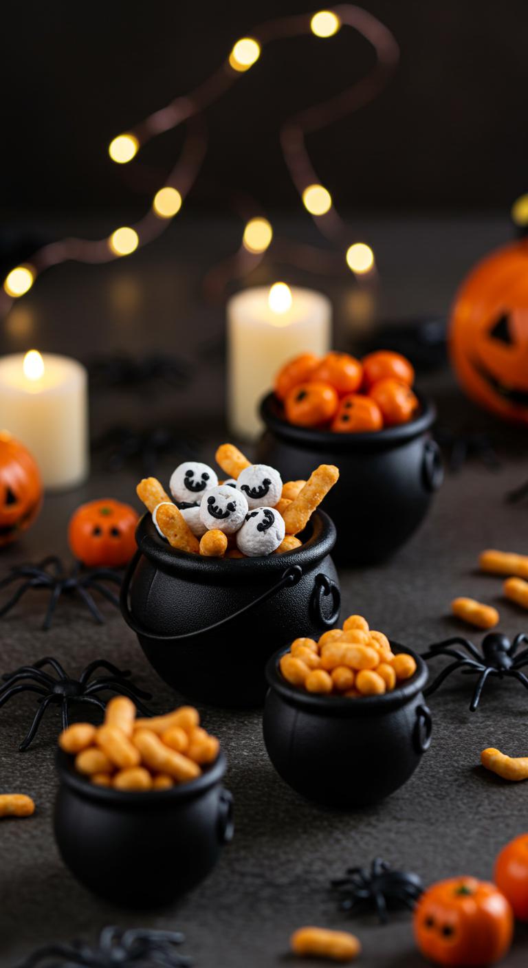 Use miniature cauldrons to serve snacks. They’re fun and thematic. You can find small cauldrons in party stores or online at an affordable price. Fill them with popcorn, candy, or chips. It’s a creative way to present food while sticking to your theme. Add embellishments like faux spiders or cobwebs for extra effect. Guests will enjoy munching from these quirky containers.
