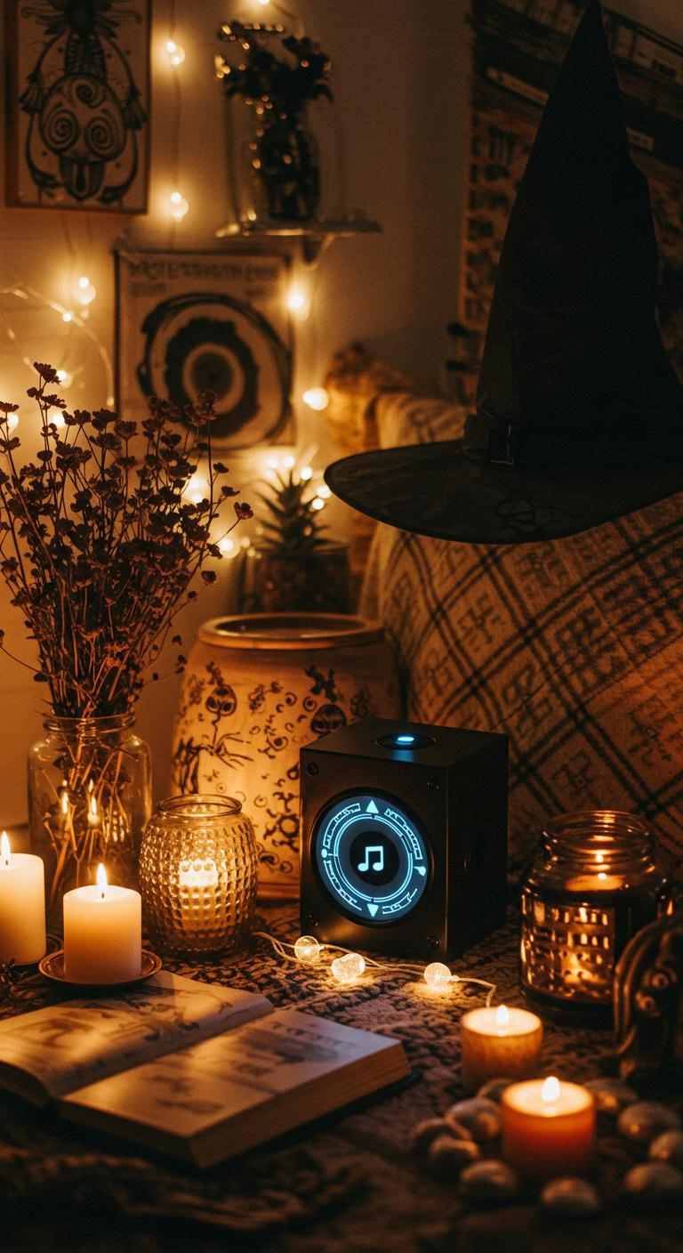 Curate a playlist that adds to your atmosphere. Think spooky sounds, nature noises, or witch-themed songs. Music sets the vibe and keeps guests engaged. Platforms like Spotify have ready-made playlists. You can also create your own based on your favorite witchy tunes. Ensure the volume is low for whispering conversations.
