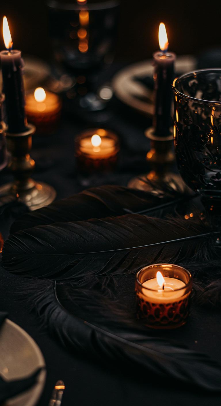 Incorporate black feathers into your decor for a mystical touch. They can easily be found at craft stores or even found in nature. Use them to accentuate your table settings or as part of centerpieces. A few strategically placed feathers can add texture and drama. Try layering them with other elements like leaves or flowers. It’s an easy and cost-effective way to elevate your aesthetic.