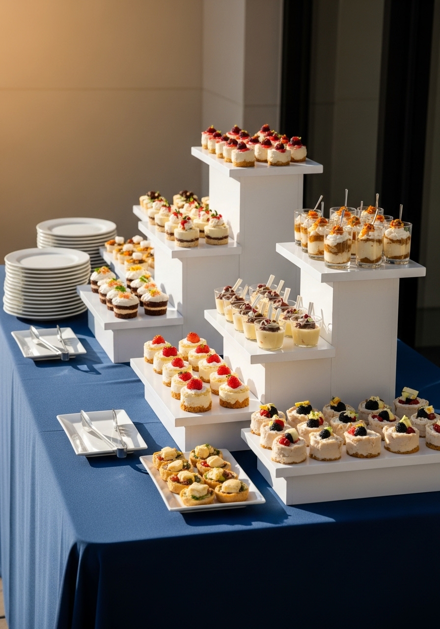 Flat tables are boring. I use white cake stands in three heights to create levels for food presentation, and it makes my buffet look professionally styled.