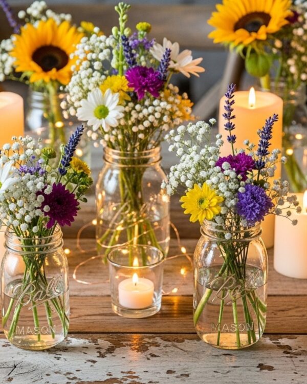 Discover 20 best wildflower mason jar centerpieces to elevate your events. Easy DIY ideas for stunning, rustic tablescapes—try them now!