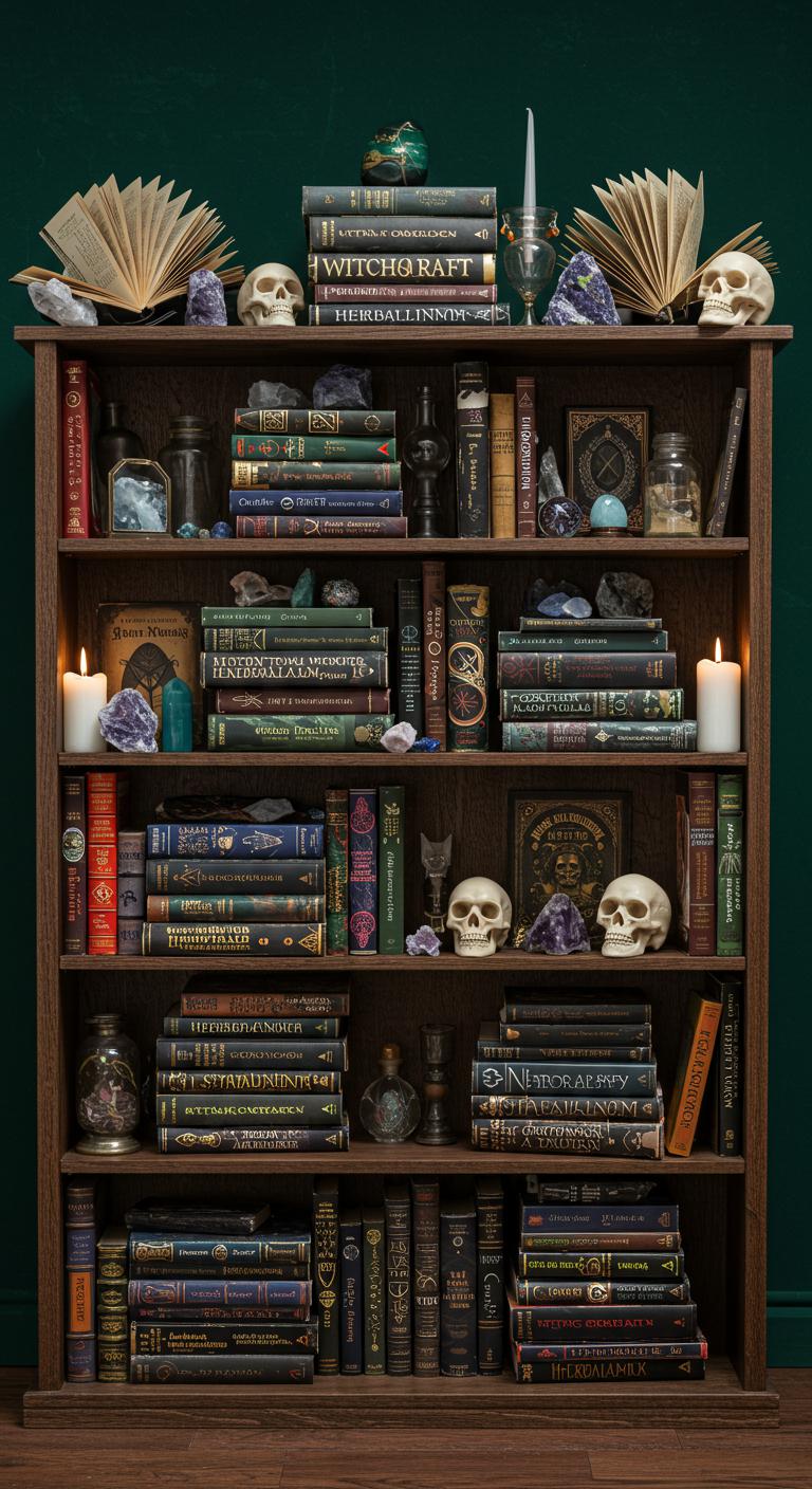 Showcase your interests with spellbound shelves filled with books and mystical treasures. Use open shelving to display your favorite witchcraft books and crystals. Pair them with vintage trinkets to enhance the aesthetic. Consider including candle arrangements of varying heights for added depth and drama. To save money, shop at thrift stores or flea markets for unique finds that add character. You can also make your own trinkets by crafting or repurposing old items. This creates a personalized focal point that tells your story.