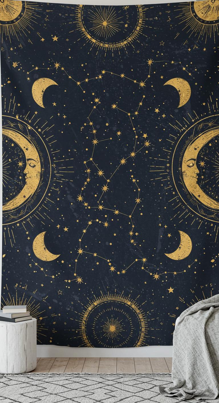 Celestial designs can add a dreamy vibe to your walls. Look for tapestries featuring moons, stars, or astrological symbols. These pieces offer large-scale art without breaking the bank. You can find affordable options online or even make your own. Buy a plain fabric and paint celestial patterns using fabric paints. Hang it above your bed or as a focal point in your living area to create a calming atmosphere.