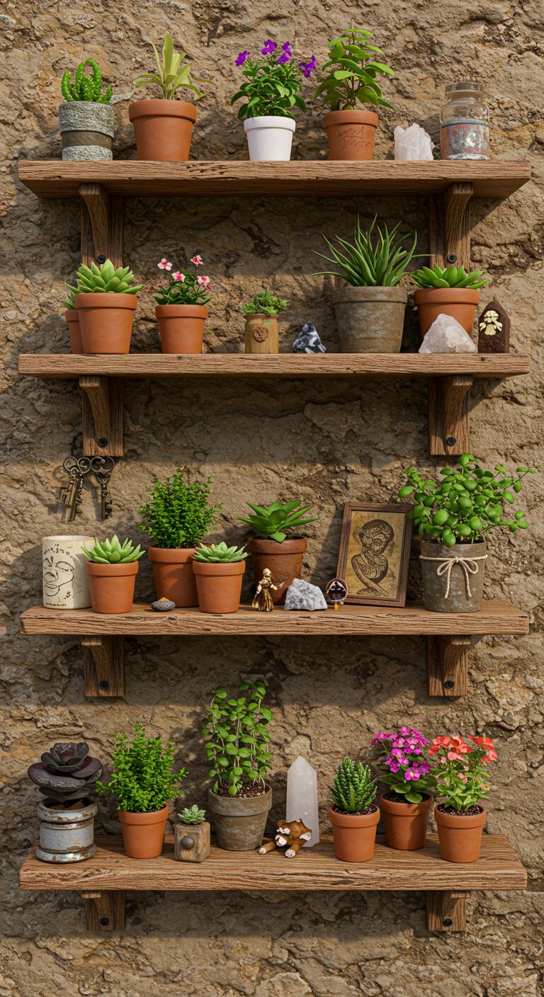 Install floating shelves to showcase your most treasured witchy items. Paint or stain them to match your overall decor. Display crystals, candles, or small plants for a natural touch. This creates visual interest without overcrowding your space. You can easily change the items seasonally or based on your mood. Floating shelves are a practical solution for limited space while still allowing you to show off your personality beautifully.
