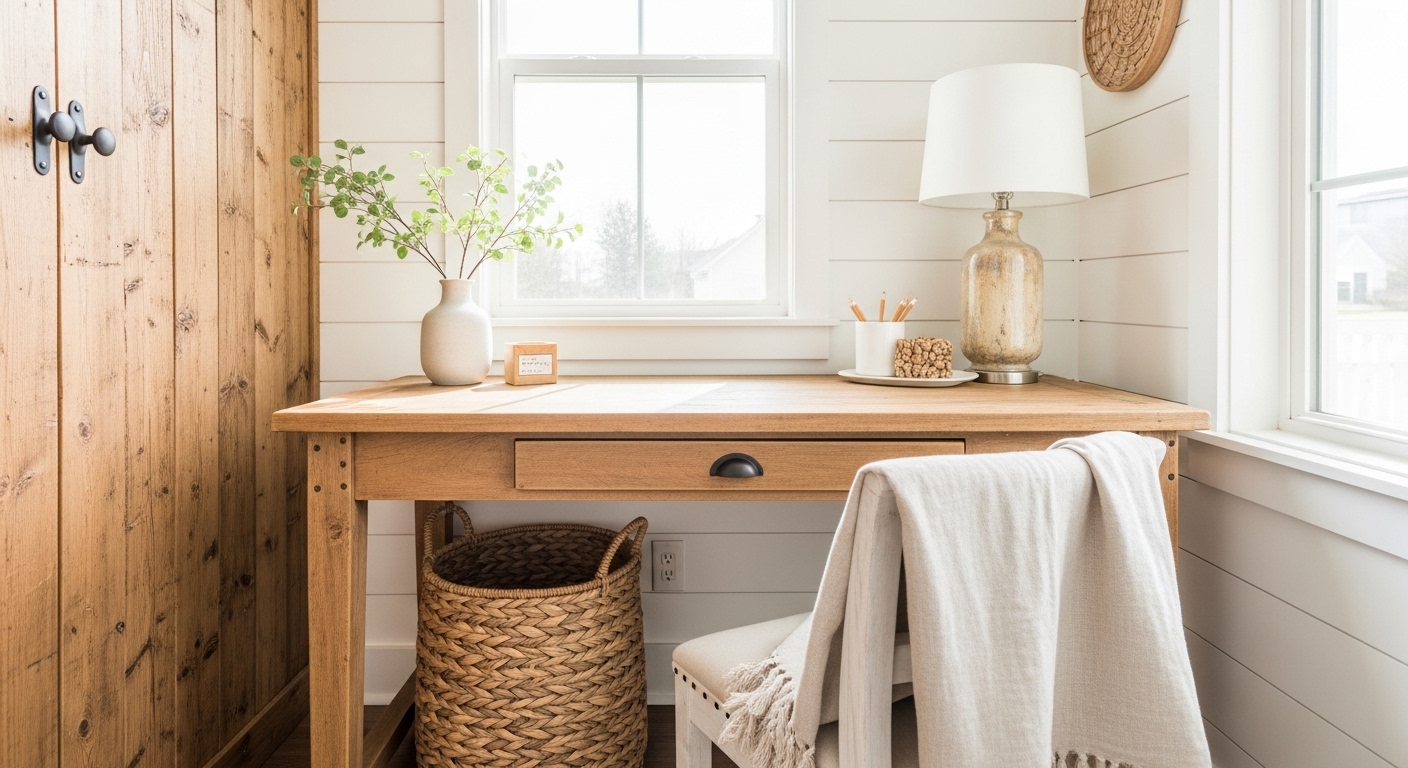 Discover 25 affordable farmhouse office decor ideas on a budget that create a high-end look for your home workspace without breaking the bank.