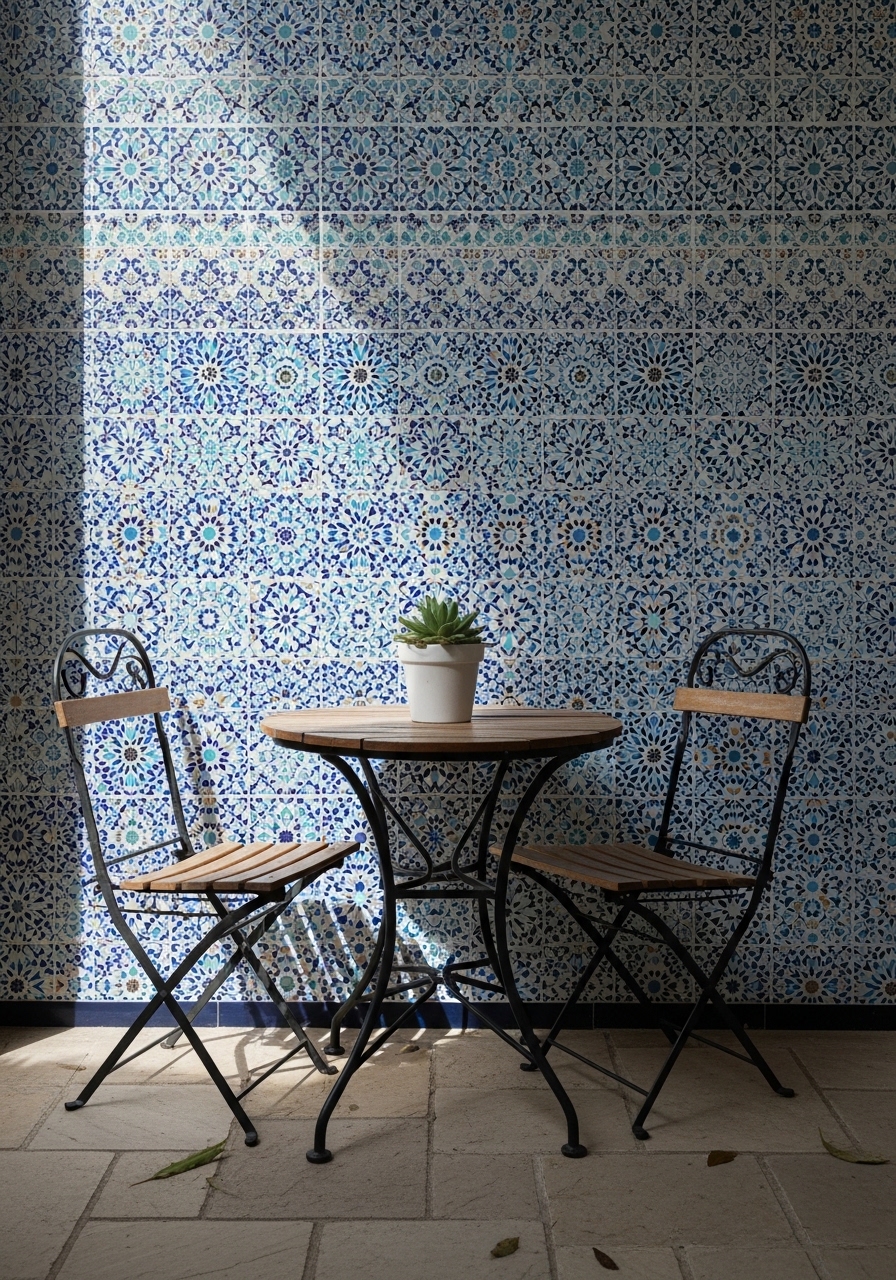 I used peel-and-stick tile panels in blue and white on a small wall. I ordered peel and stick outdoor tile and a bistro table. Budget: $90–$250. It reads like handcrafted tile without the fuss. Photos often show flawless seams; real life needs good surface prep. Styling tip: grout-look paint hides minor gaps. Mistake: applying on rough surfaces—choose smooth, clean backgrounds.