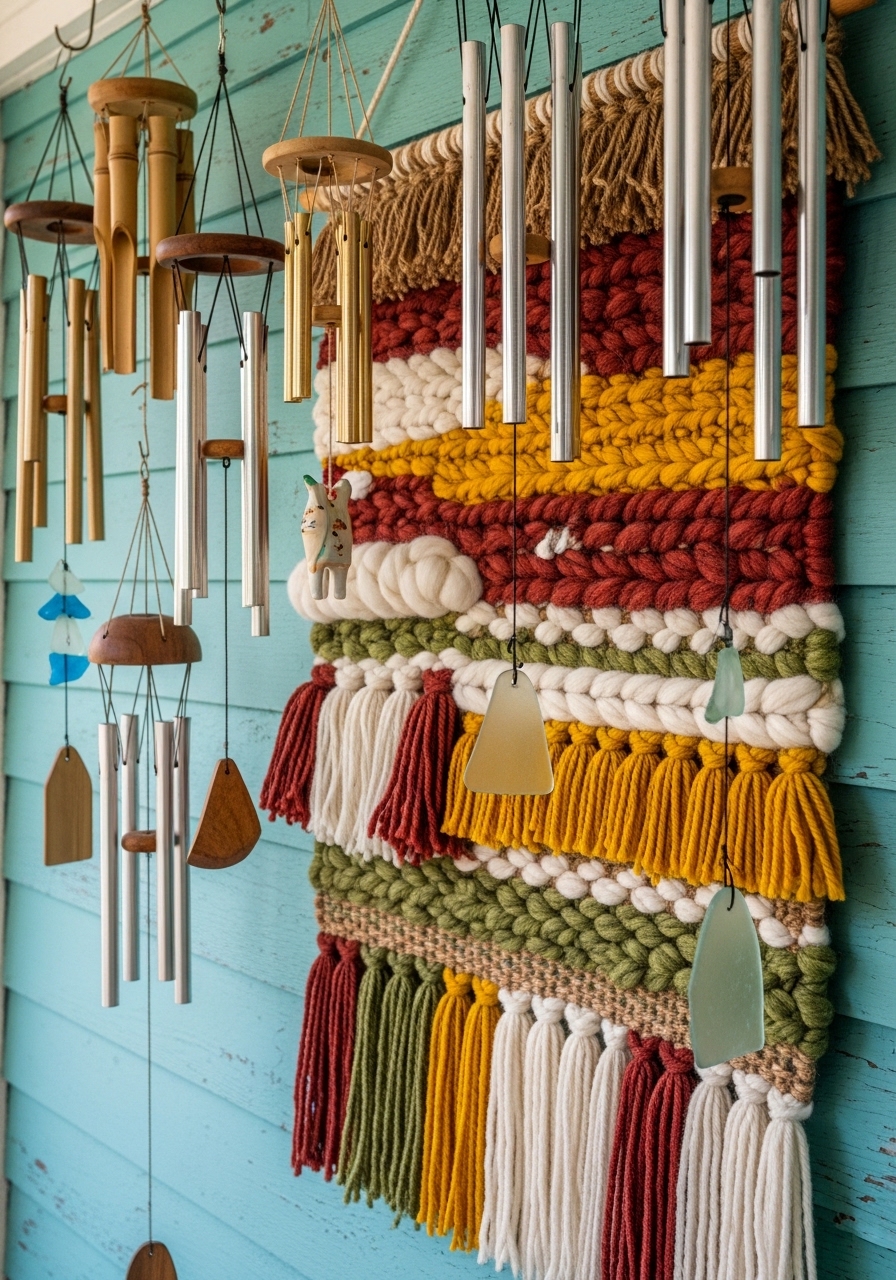 I hung metal and wooden wind chimes plus a 36" woven wall hanging. I found outdoor wind chimes and woven wall hanging 36 inch. Cost: $30–$90. The sound and texture add personality. Photos can make pieces look sterile; in person they add movement. Styling tip: mix metal and fiber for contrast. Mistake: overcrowding a small wall—leave breathing room.