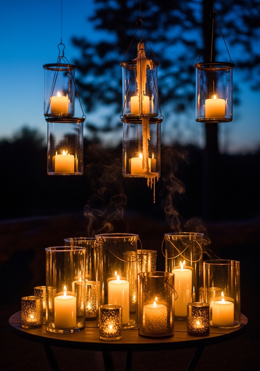I clustered glass lanterns and a hanging candle tier for soft evening light. I use glass outdoor lanterns and outdoor candle hanging tier. Prices run $25–$110. Real life: opt for LED candles near winds. Photos make candles look steady; outside they flicker. Styling tip: group in threes at varied heights. Mistake: open flames near fabric—use safe flameless options.