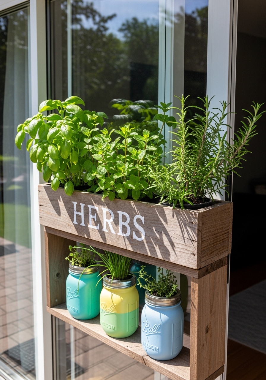 I use a painted cedar herb box with basil, mint, and rosemary near the door. I buy cedar herb planter box and mason jar planter set. Cost: $25–$70. Fresh herbs add scent and utility. Photos make herbs look lush; real life needs regular watering. Styling tip: rotate herbs for sun exposure. Mistake: overpotting small herbs—keep roots slightly confined.