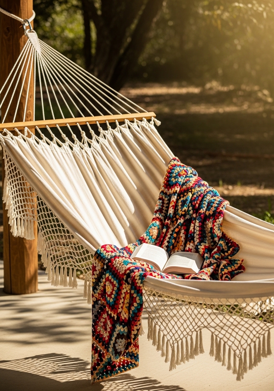 I strung an 80" cotton hammock with fringe between two posts. I use cotton hammock 80 inch and outdoor hammock stand. Price: $40–$130. It creates a true relaxation spot. Photos show perfect drape; real life needs anchors rated for 400–600 lbs. Styling tip: add a small outdoor pillow. Mistake: placing under dripping eaves—pick a dry site.