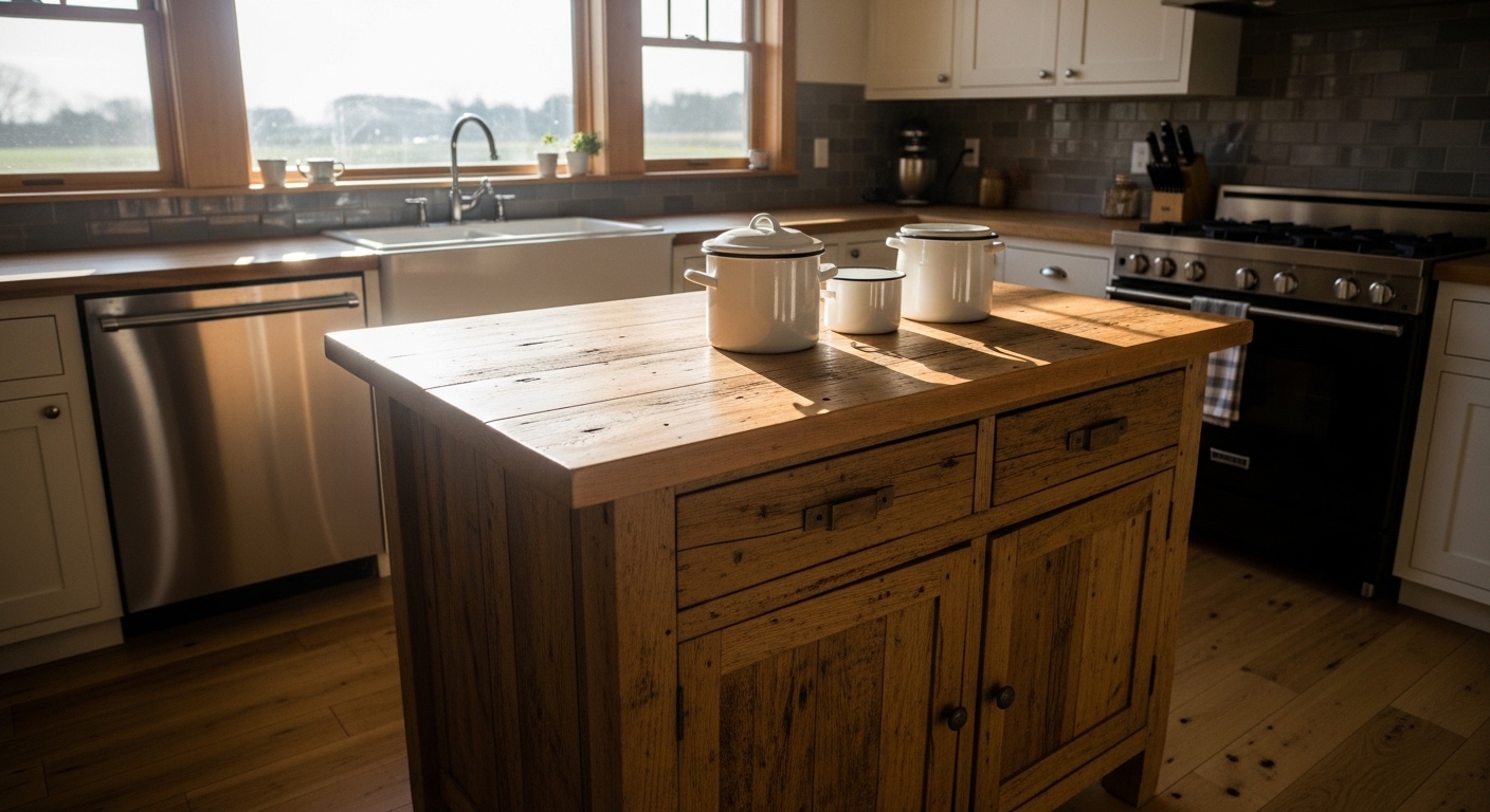 This wooden table surrounded by chairs screams cozy family gatherings in a boho farmhouse kitchen. The natural wood tones bring in that rustic feel, while you could easily add boho flair with some woven placemats. I’ve hosted brunches here-inspired setups, and it’s always a hit.