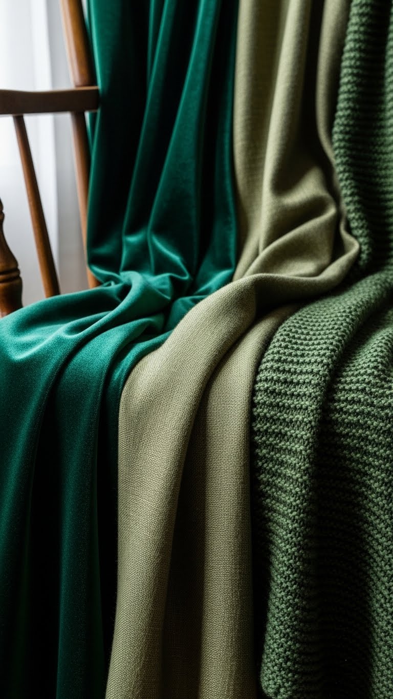 Drape green fabrics over chairs or beds. Find throws at budget shops. Choose soft materials like cotton. Layer them for interest. This updates furniture fast. For DIY ideas, cut green sheets into throws and hem the edges. Use a sewing kit for $10. Add them to seating areas. They enhance comfort and style. Switch for different seasons. Make it personal.