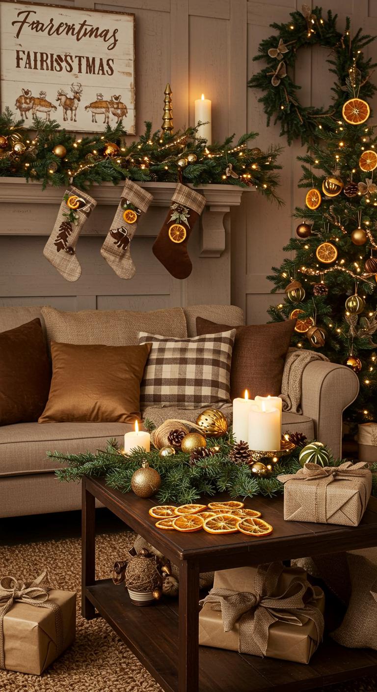 Embrace rustic charm by adding natural textures like burlap, wood, and twine. Use handcrafted ornaments and dried citrus for a touch of authenticity.