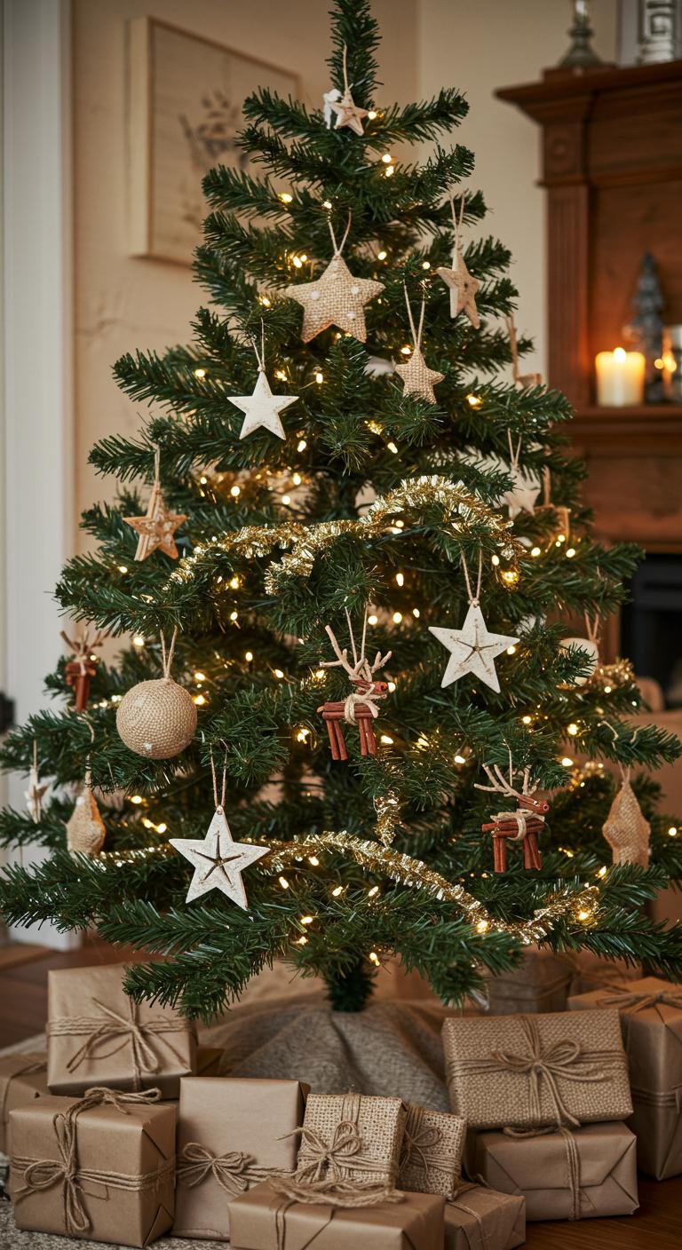 Imagine delicate wooden stars, burlap snowflakes, and cinnamon stick reindeer adorning your tree, each piece exuding rustic charm.