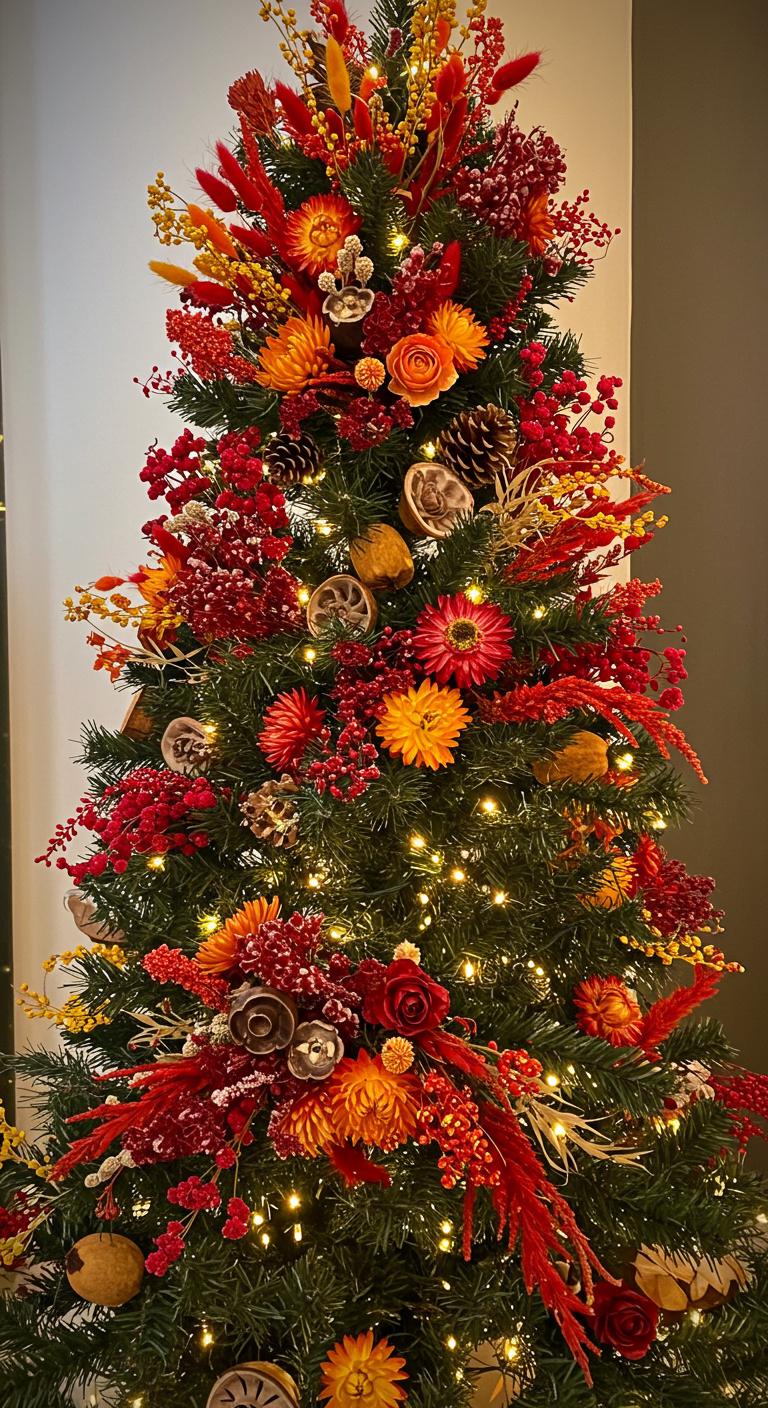 This holiday season, transform your Christmas tree into a stunning centerpiece by incorporating natural elements and dried flowers.