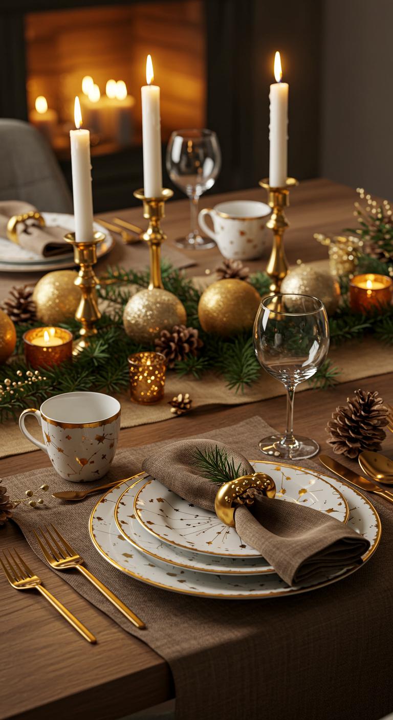 When you envision an elegant holiday setting, the combination of white and gold with subtle brown highlights creates a stunning visual that exudes sophistication.