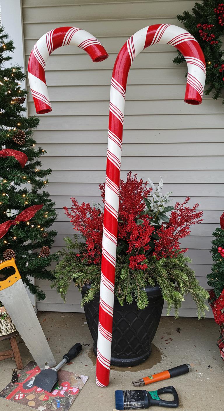 Grab a few long wooden dowels, some red and white paint, and a little elbow grease, and you’ll have a bold, budget-friendly giant candy cane that pops on your porch. You’ll cut, sand, and join dowels using simple dowel rod techniques, paint crisp candy cane colors, and anchor the piece in a planter. It’s striking, free-spirited, and easy to customize.