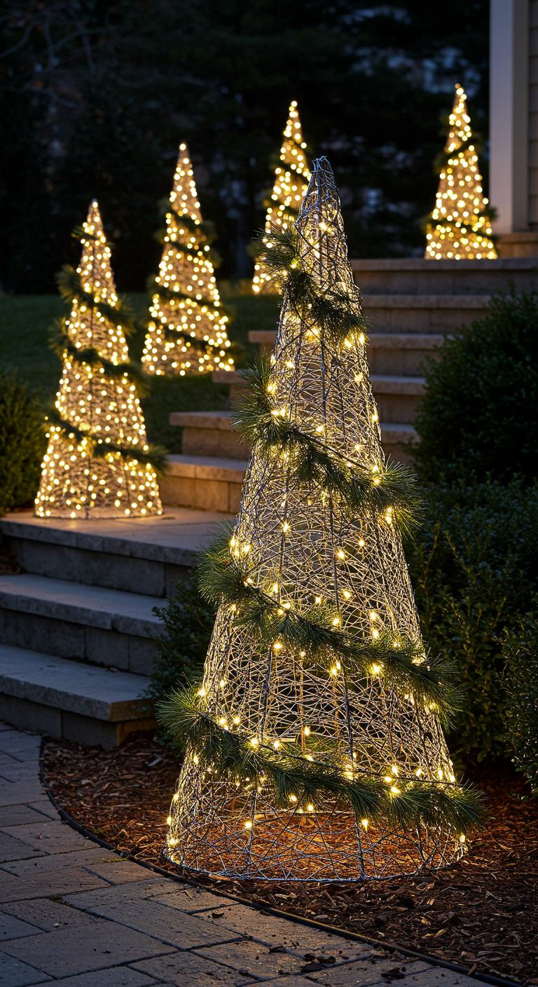 A simple wire mesh cone can transform into a glowing topiary in just an hour, and you don’t need fancy tools to do it.