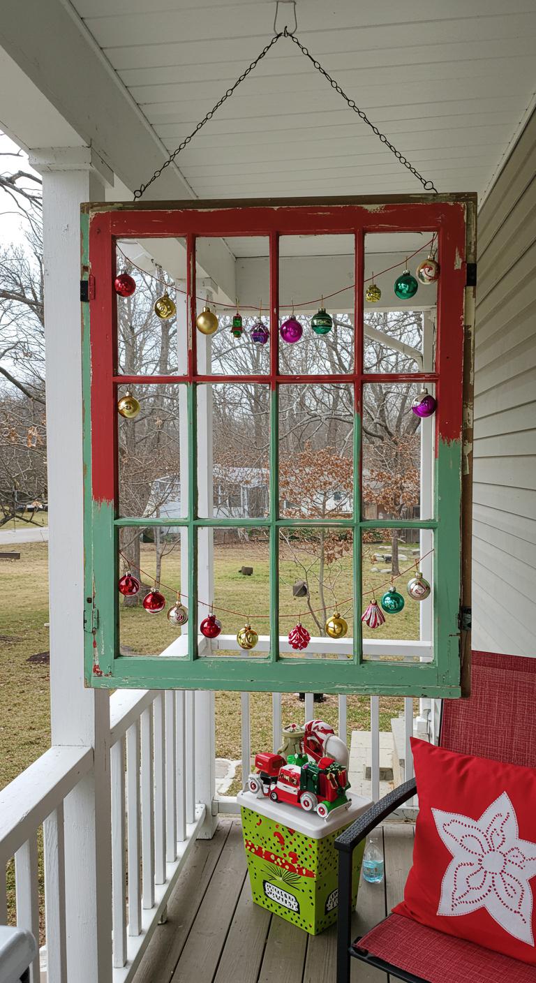 You’ll strip, paint, and seal the frame, then string a variety of mini ornaments across panes for an airy, joyful window frame decor.
