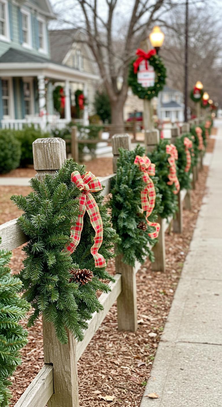 When you mount evergreen wreaths on fence posts, they instantly turn a plain boundary into a festive, fragrant welcome that’s visible from the street.