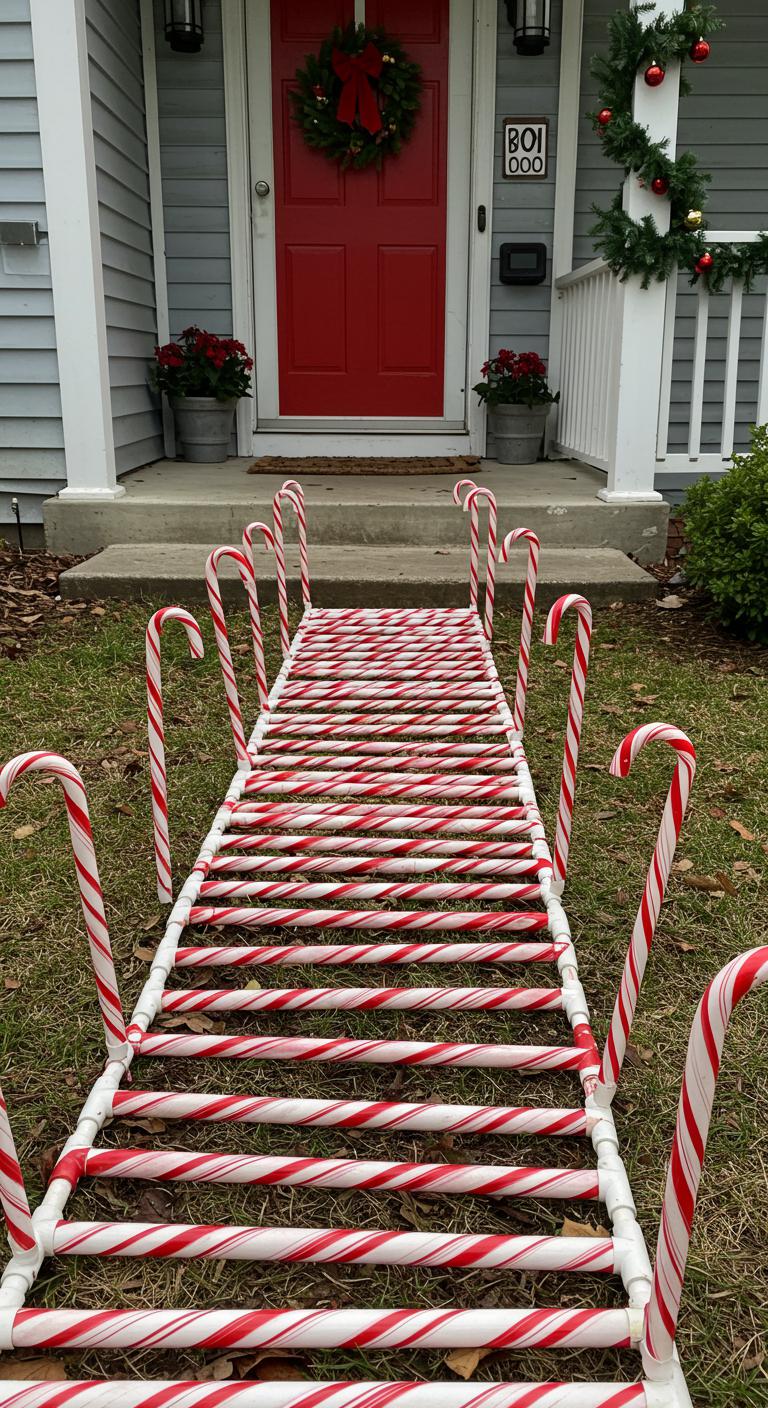 Think of a cheerful walkway that guides guests to your door: a candy cane pathway made from simple PVC pipe gives you that look without breaking the bank.