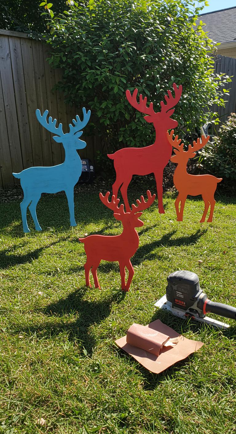 You’ll pick plywood, trace varied silhouette sizes, cut with a jigsaw, sand, and choose bold reindeer colors that suit your style.