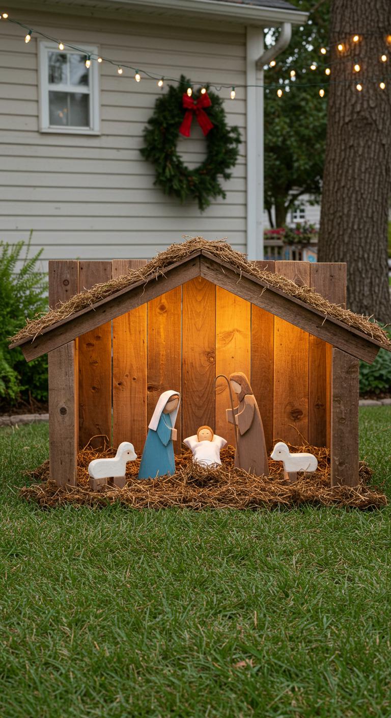 Give your yard a rustic, heartfelt focal point with a barn wood nativity scene that feels handmade and timeless.