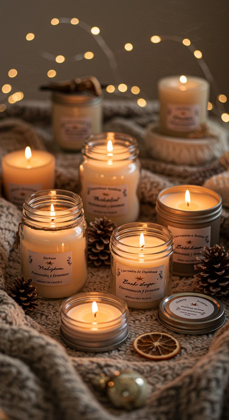 Choose unique candle containers, like mason jars or recycled tins, to add a personal touch.