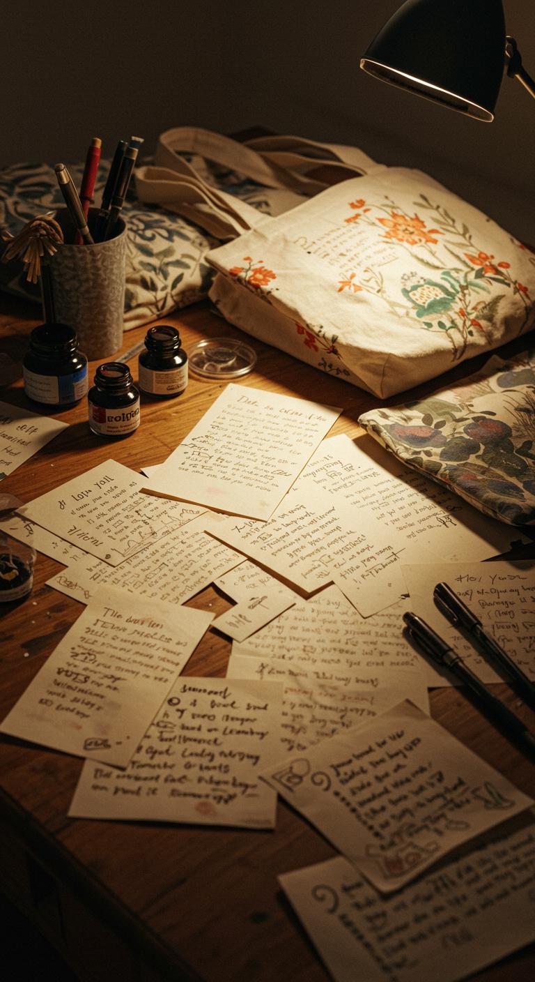 After crafting those stylish fabric tote bags, consider adding a personal touch with handwritten letters or poems.