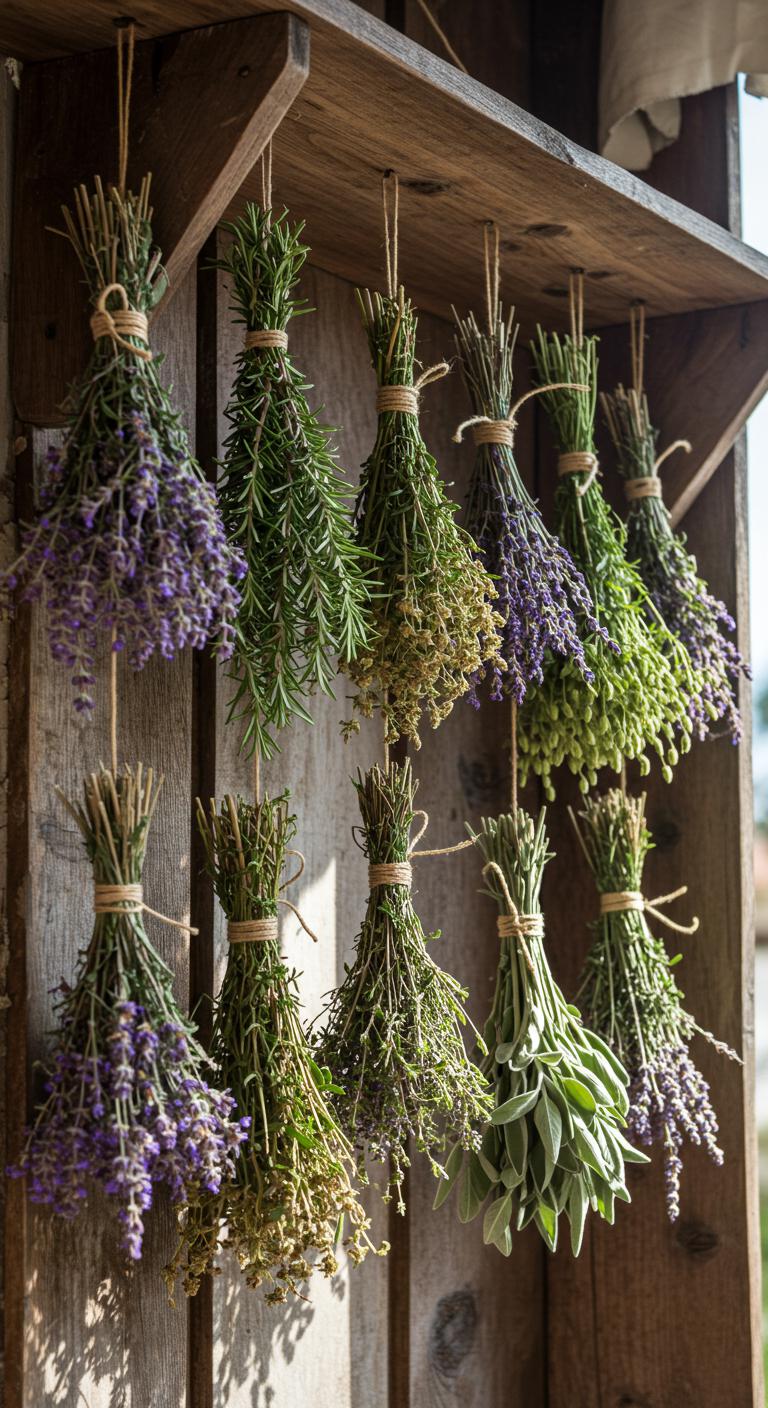 Dried herb bundles make enchanting decor and can help cleanse your space energetically. Gather herbs like rosemary, sage, or thyme from your garden or purchase them at the store. Tie them together using twine and hang them around your home. You can also lay them on your table or mantle. Not only does this look whimsical, but the aroma gives a perfect seasonal touch. It brings the heart of nature indoors!