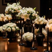 Those towering white vases flanking a venue wall are giving major architectural vibes. Pair them with low arrangements on tables for height drama. I did this at my cousin’s wedding rehearsal – stole the show without a single balloon in sight.