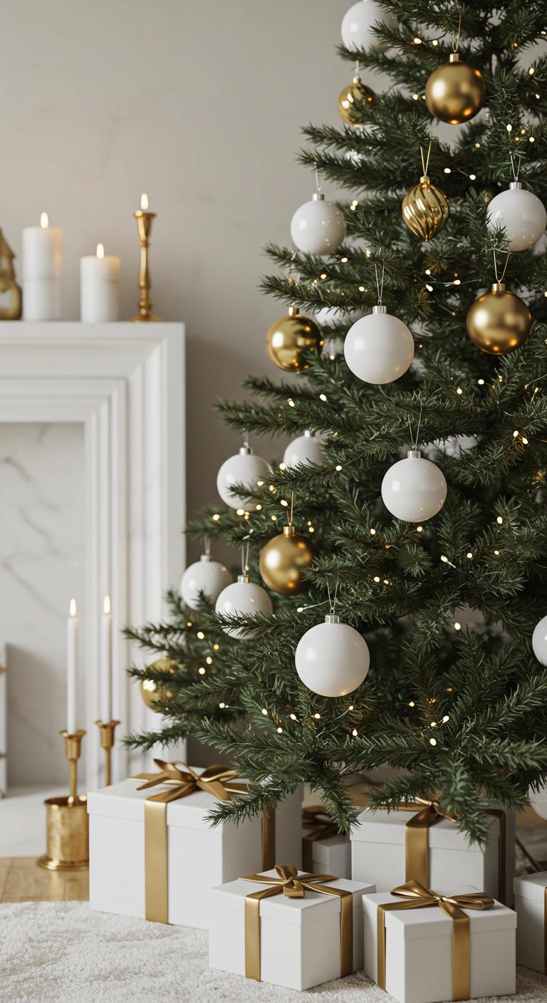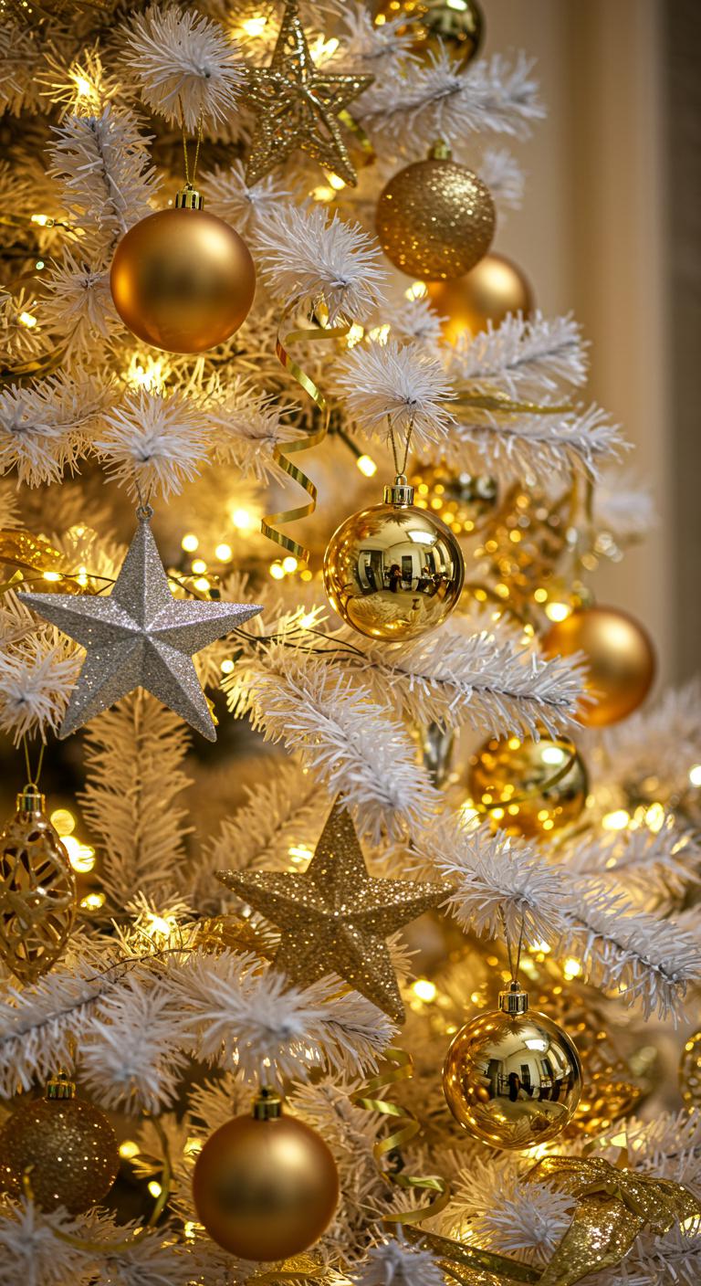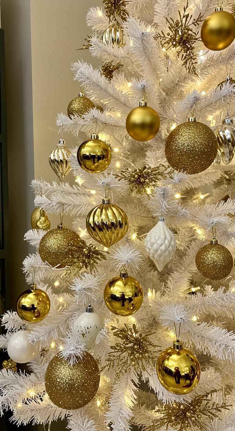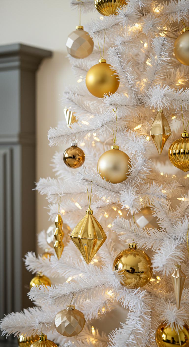 When you want to elevate your holiday decor, a shimmering white and gold tree adorned with metallic accents can transform your space into a winter wonderland.