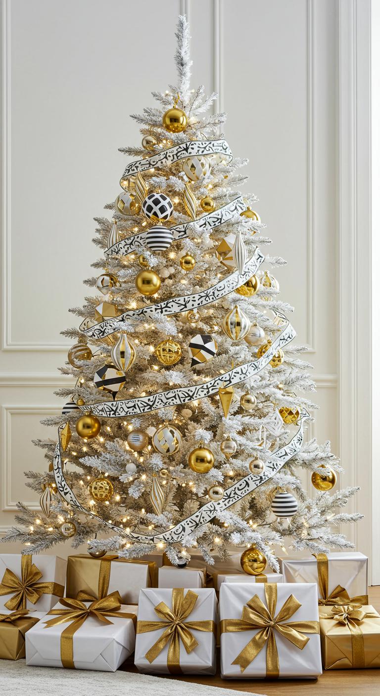 When you embrace a bold white and gold Christmas tree adorned with striking graphic patterns, your holiday decor transforms into a contemporary masterpiece.