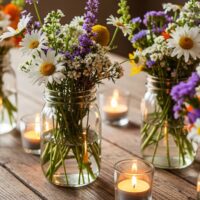 You’ll hang mason jar crafts filled with fairy lights, sprigs, or mini pinecones, pairing them with burlap ribbons and matte wooden beads.