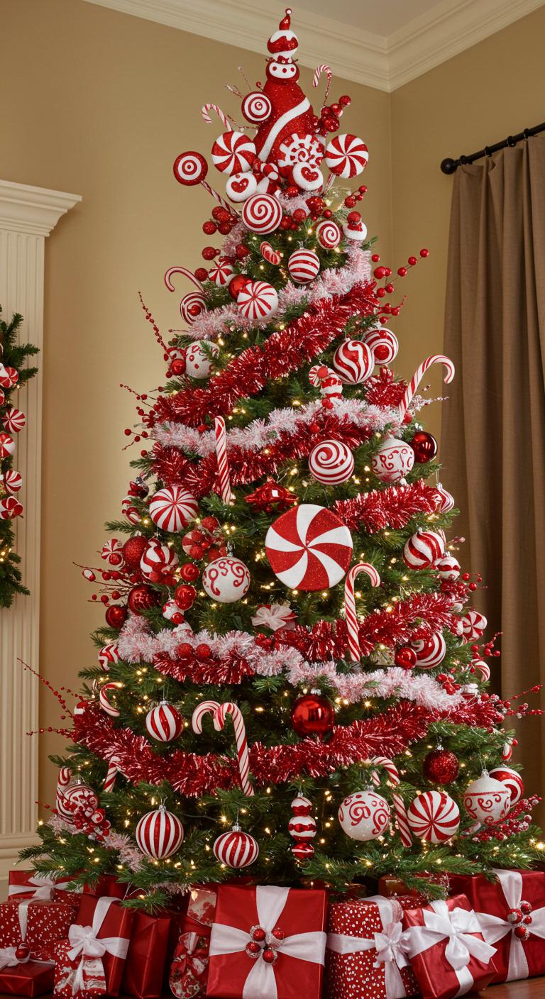 Add colorful ornaments in red and white, and watch your tree become a sweet centerpiece that radiates cheer.
