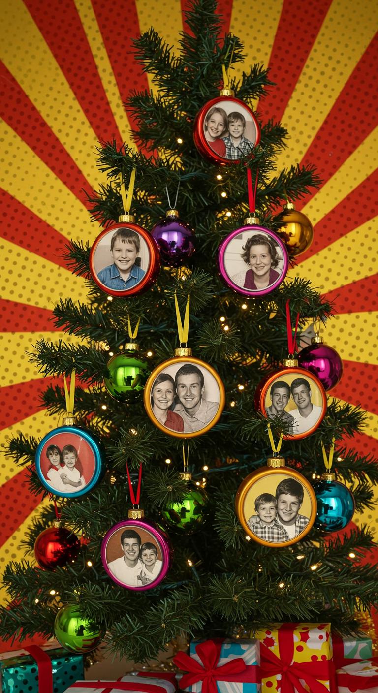 Amidst the vibrant energy of the 1960s pop art influence, another cherished tradition emerges: the use of family photo ornaments that capture the essence of togetherness and nostalgia.