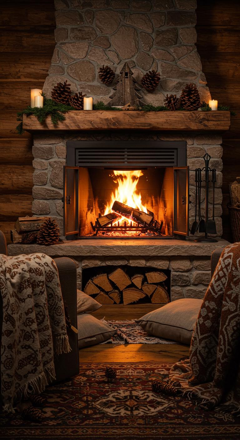 As you step into a cozy cabin, the warmth of crackling logs in the fireplace welcomes you, wrapping you in a blanket of comfort.