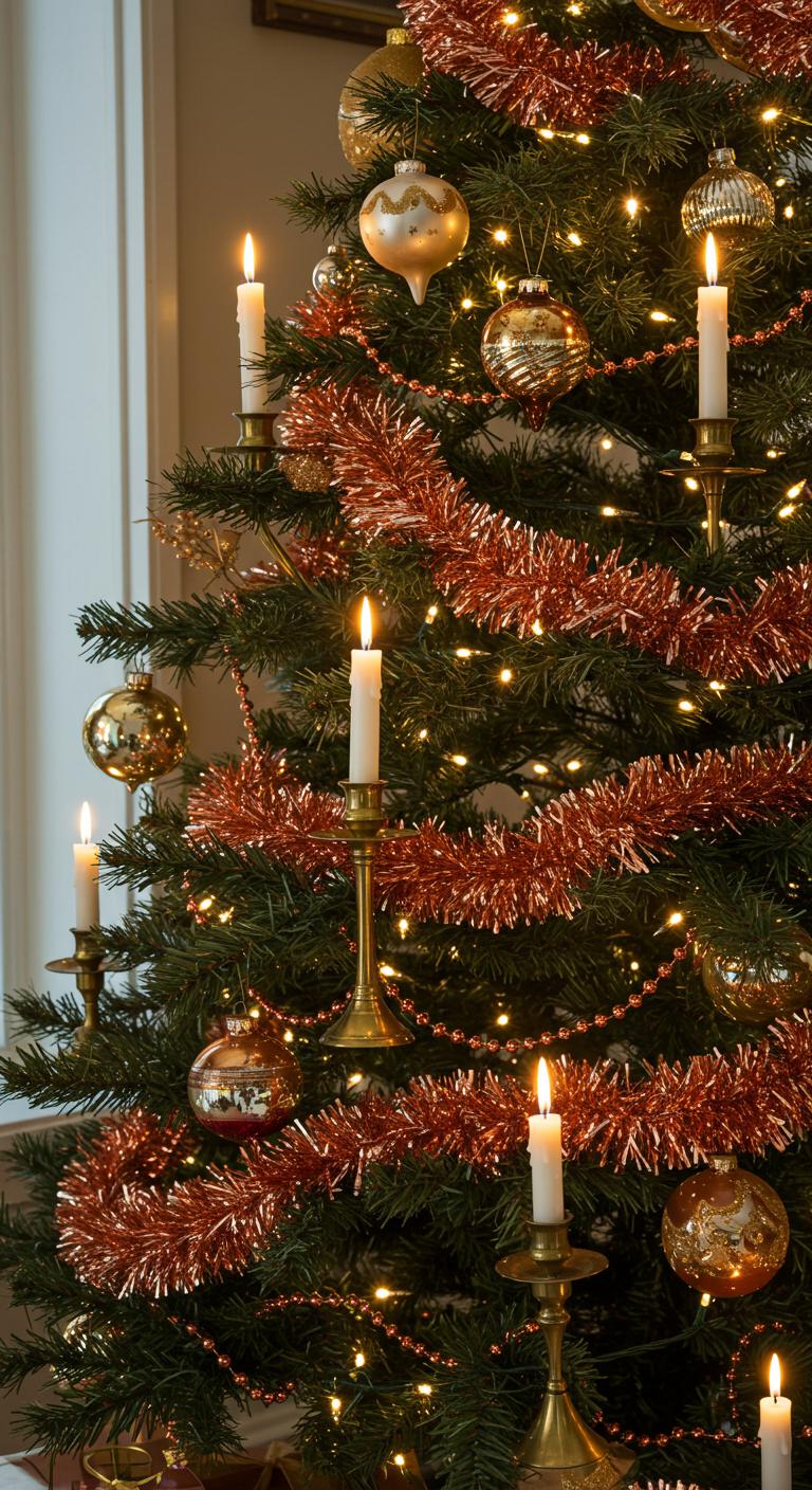 Antique brass and copper accents bring a timeless elegance to your Christmas tree, adding warmth and character that modern decorations often lack.