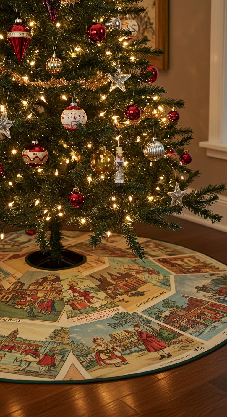 Transform your holiday decor with a vintage postcard tree skirt that tells a story of Christmases past.