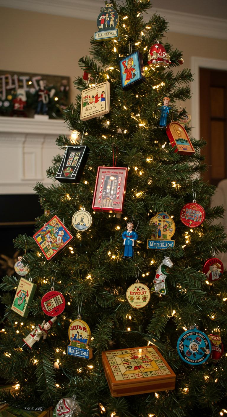 Vintage game piece decorations bring a playful nostalgia to your Christmas tree, capturing the spirit of friendly competition and cherished family memories.